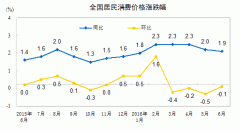 2016年6月份,全国居民消费价格总水平同比上涨1.9%。其中,城市上涨1.9%,农村上涨1.9%;食品价格上涨4.6%,非食品价格上涨1.2%;消费品价格上涨1.7%,服务价格上涨2.2%。上半年,全国居民消费...