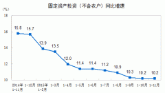 2015年1-11月份,全国固定资产投资(不含农户)497182亿元,同比名义增长10.2%,增速与1-10月份持平。从环比速度看,11月份固定资产投资(不含农户)增长0.73%。 分产业看,1-11月份,第一产业投...