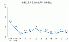 2015年12月份,规模以上工业增加值同比实际增长5.9%(以下增加值增速均为扣除价格因素的实际增长率),比11月份回落0.3个百分点。从环比看,12月份,规模以上工业增加值比上月增长0.41%。...